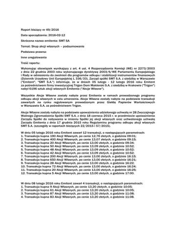 (Dziennik Urzędowy Unii Europejskiej L 336/33), Zarząd spółki SMT S.A. z siedzibą w Warszawie