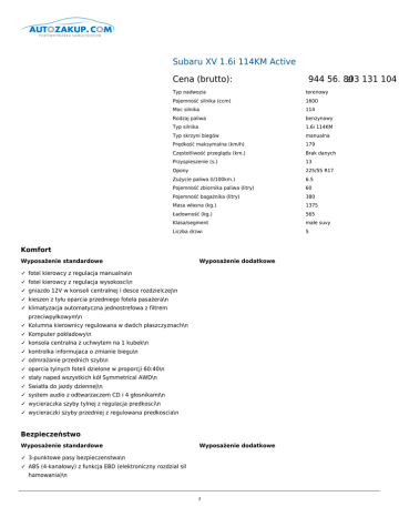 Subaru XV 1.6i 114KM Active Cena (brutto): 93