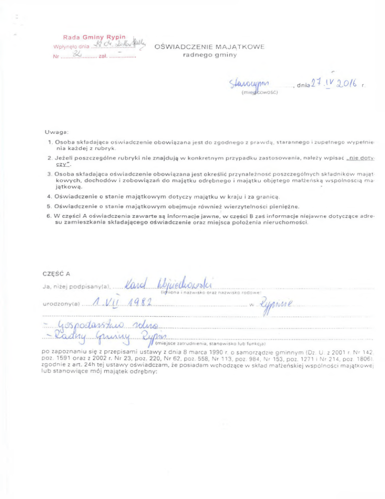 4. O ś w ia d c ze n ie o stanie m a ją t k o w y m dotyczy majątku w kraju i za granicą.