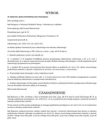 WYROK UZASADNIENIE - Portal Orzeczeń Sądu Okręgowego w