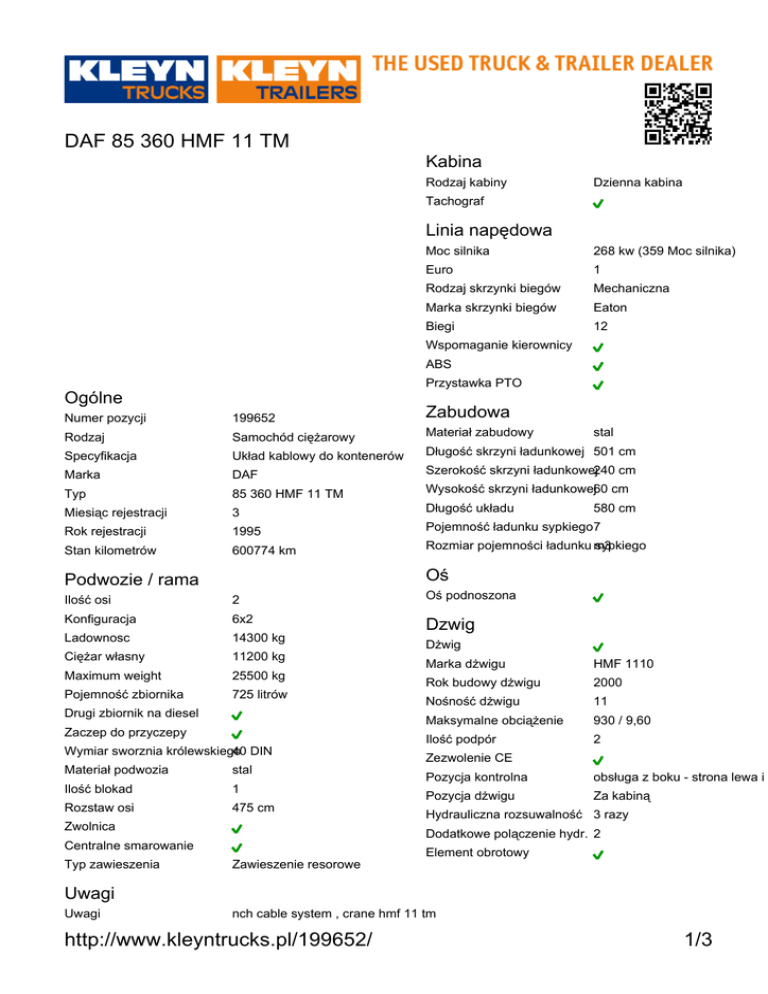 http://www.kleyntrucks.pl/199652/ 1/3 DAF 85 360 HMF 11 TM