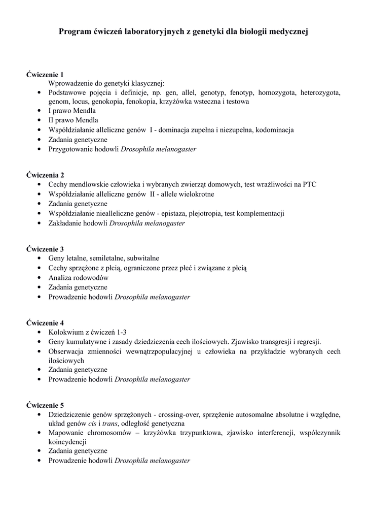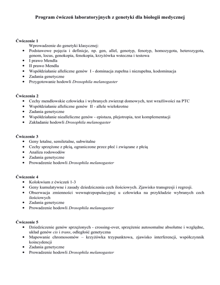 Program ćwiczeń laboratoryjnych z genetyki dla