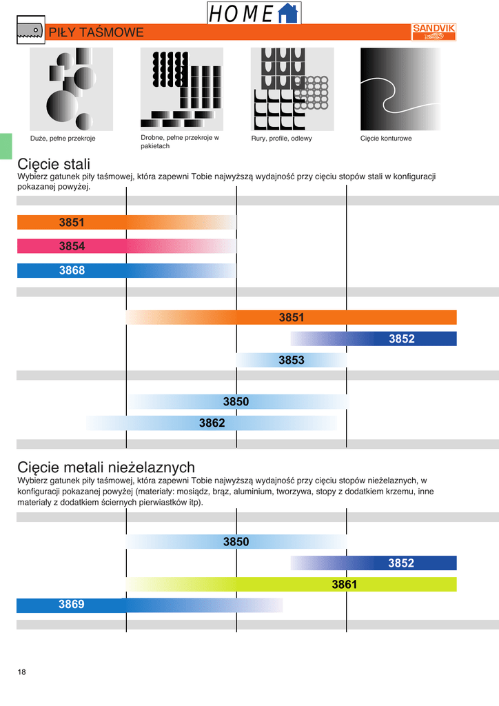 PIüY TAåMOWE Duýe, pe¸ne przekroje HOME Drobne, pe¸ne przekroje w pakietach Rury, profile, odlewy Ci«cie konturowe Ci«cie stali Wybierz gatunek pi¸y taæmowej, kt—ra zapewni Tobie najwyýszˆ wydajnoæ• przy ci«ciu stop—w stali w konfiguracji pokazanej powyýej. @@@@@@@@@@@@@@@@@@@@@@@@@@@@@@@@@@@@@@@@@@@@@@@@@@ 3851 3854 3868 @@@@@@@@@@@@@@@@@@@@@@@@@@@@@@@@@@@@@@@@@@@@@@@@@@ 3851 3852 3853 @@@@@@@@@@@@@@@@@@@@@@@@@@@@@@@@@@@@@@@@@@@@@@@@@@ 3850 3862 @@@@@@@@@@@@@@@@@@@@@@@@@@@@@@@@@@@@@@@@@@@@@@@@@@ Ci«cie metali nieýelaznych Wybierz gatunek pi¸y taæmowej, kt—ra zapewni Tobie najwyýszˆ wydajnoæ• przy ci«ciu stop—w nieýelaznych, w konfiguracji pokazanej powyýej (materia¸y: mosiˆdz, brˆz, aluminium, tworzywa, stopy z dodatkiem krzemu, inne materia¸y z dodatkiem æciernych pierwiastk—w itp). @@@@@@@@@@@@@@@@@@@@@@@@@@@@@@@@@@@@@@@@@@@@@@@@@@ 3850 3852 3861 3869 @@@@@@@@@@@@@@@@@@@@@@@@@@@@@@@@@@@@@@@@@@@@@@@@@@ 18 HOME PIüY TAåMOWE Dla danej operacji ci«cia istnieje najlepsze narz«dzie pod wzgl«dem wydajnoæci. Sandvik dostarcza optymalne rozwiˆzania dla szerokiej gamy zastosowaÄ. @@@@@@@@@@@@@@@@@@@@@@@@@@@@@@@@@@@@@@@@@@@@@@@@@@ Ci«cie produkcyjne duýych detali 3851 — SANDFLEX® Cobra™ 20 3854 — SANDFLEX® King Cobra™ 21 3868 — SANDVIK Carbide Triple Set™ “Xtra” 21 Pi¸a o wysokiej wydajnoæci przy ci«ciu duýych detali Pi¸y do ci«cia bardzo trudno obrabialnych stali @@@@@@@@@@@@@@@@@@@@@@@@@@@@@@@@@@@@@@@@@@@@@@@@@@ Ci«cie duýych detali z ekstremalnie trudnych materia¸—w Ci«cie produkcyjne / operacje specjalne 3851 — SANDFLEX® Cobra™ 22 3852 — SANDFLEX® Die-Band 23 3853 — SANDFLEX® Fabricator 23 Pi¸y do ci«cia ma¸ych detali z zachowaniem duýej wydajnoæci Pi¸y do ci«cia konturowego stali narz«dziowych @@@@@@@@@@@@@@@@@@@@@@@@@@@@@@@@@@@@@@@@@@@@@@@@@@ Pi¸y do ci«cia rur i profili w pakietach Uniwersalne ci«cie 3850 — SANDFLEX® Dragon™ 24 3862 — SANDFLEX® Compensator 25 Pi¸y do ci«cia ¸atwo obrabialnych stali @@@@@@@@@@@@@@@@@@@@@@@@@@@@@@@@@@@@@@@@@@@@@@@@@@ Pi¸y do lekkich maszyn z ograniczonym posuwem @@@@@@@@@@@@@@@@@@@@@@@@@@@@@@@@@@@@@@@@@@@@@@@@@@ Ci«cie produkcyjne duýych detali 3850 — SANDFLEX® Dragon™ 26 3852 — SANDFLEX® Die-Band 26 3861 — SANDFLEX® NF 27 3869 — SANDVIK Carbide Triple Set™ 27 Pi¸y do maszyn poziomych Pi¸y do maszyn pionowych i do ci«cia konturowego Doskona¸y wyb—r do ci«cia metali nieýelaznych Ð niska cena ci«cia @@@@@@@@@@@@@@@@@@@@@@@@@@@@@@@@@@@@@@@@@@@@@@@@@@ Pi¸a do ci«cia odlew—w z materia¸—w trudno obrabialnych (z dodatkiem sk¸adnik—w przyspieszajˆcych zuýycie pi¸y, jak np.: krzem, grafit) 19 HOME PIüY TAåMOWE SANDVIK Wybór gatunku pi¸y Super stopy Stopy specjalne 3854 Stale wysoko stopowe 3868 3851 3852 3862 Stal nierdzewna 3851 3852 3862 Stale niskostopowe 3850 3853 Stale niestopowe Metale nieýelazne 3861 3850 3853 3861 3869 Materia¸y trudne Drobne detale do 50 mm, rury, profile 3850 Ñ SANDFLEX¨ Dragonª Pi¸a bimetaliczna, z«by wykonane ze stali Matrix II, wysoka trwa¸oæ•. Doskona¸e narz«dzie do uniwersalnego zastosowania, do maszyn pionowych i ma¸ych maszyn poziomych. ¨ ª 3851 Ñ SANDFLEX Cobra Pi¸a bimetaliczna, z«by wykonane ze stali M 42 z dodatkiem kobaltu, bardzo wysoka trwa¸oæ•. Pi¸a do zastosowania w przemyæle do ci«cia stali stopowych i stali nierdzewnych. 3852 Ñ SANDFLEX¨ Die-Band Pi¸a bimetaliczna, z«by wykonane ze stali M 42 z dodatkiem kobaltu, bardzo wysoka trwa¸oæ•. Z«by posiadajˆ dodatni kˆt natarcia. Pi¸a do ci«cia konturowego stali wysokostopowych i stali narz«dziowych. Duýe detale > 50 mm, rury o grubych æciankach 3853 Ñ SANDFLEX¨ Fabricator Pi¸a bimetaliczna, z«by wykonane ze stali Matrix II, wysoka trwa¸oæ•. Doskona¸e narz«dzie do ci«cia rur i profili u¸oýonych w pakiety. 3854 Ñ SANDFLEX¨ King Cobraª Pi¸a bimetaliczna, z«by wykonane ze stali M 51/ T 42 z dodatkiem kobaltu, wanadu i specjalnych stop—w, ekstremalnie wysoka trwa¸oæ•. Pi¸a do zastosowania w przemyæle do ci«cia duýych, pe¸nych detali wykonanych ze stali stopowych, nierdzewnych i innych trudnych do ci«cia materia¸—w 3861 Ñ SANDFLEX¨ NF Pi¸a bimetaliczna zaprojektowana do ci«cia materia¸—w nieýelaznych. Z«by hakowe dobrze penetrujˆ materia¸ i formujˆ wi—r. Doskonale po¸ˆczono cen« narz«dzia i trwa¸oæ• otrzymujˆc bardzo ekonomiczne narz«dzie. 3862 Ñ SANDFLEX¨ Compensator Pi¸a bimetaliczna, z«by wykonane ze stali M 42 z dodatkiem kobaltu, wysoka trwa¸oæ•. Kszta¸t z«b—w (Combo PR) pozwala na uzyskanie dobrej powierzchni ci«cia. Pi¸a szczeg—lnie przydatna do ci«cia w maszynach z ograniczonym posuwem. 3868 Ñ Carbide Triple setª ÒXtraÓ Pi¸a taæmowa z uz«bieniem z w«glika do ci«cia ærednich i duýych detali z ekstremalnie trudnych materia¸—w, jak stal nierdzewna, stopy tytanu, niklu itp. 3869 Ñ Carbide Triple setª Pi¸a wyposaýona w specjalne nak¸adki z w«glika. Doskona¸e narz«dzie do ci«cia detali wykonanych z materia¸—w trudnych zawierajˆcych domieszki powodujˆce szybkie zuýycie pi¸y np: stopy aluminium z dodatkami krzemu, stopy specjalne. 29 HOME PIüY TAåMOWE SANDVIK Podzia¸ka - iloæ• z«b—w na cal (TPI) Iloæ• z«b—w na cal (TPI) definiuje podzia¸k« pi¸y i zawiera si«, dla pi¸ taæmowych, w zakresie od 1 do 24 z«b—w na cal. Detale cienkoæcienne jak rury, blachy itp wymagajˆ uýywania drobnego uz«bienia, w przeciwnym przypadku powstaje ryzyko uszkodzenia z«b—w. Duýe detale powinny by• ci«te pi¸ami zawierajˆcymi niewielkˆ iloæ• z«b—w na cal. Wynika to z wielkoæci przestrzeni mi«dzyz«bnych, kt—re powinny pomieæci• ca¸y wi—r powstajˆcy w czasie przejæcia pi¸y przez detal. Zasadˆ tutaj jest, aby wi«ksze detale ciˆ• wi«kszˆ podzia¸kˆ czyli mniejszˆ iloæciˆ z«b—w na cal. Mi«kkie metale takie jak aluminium czy brˆz wymagajˆ du