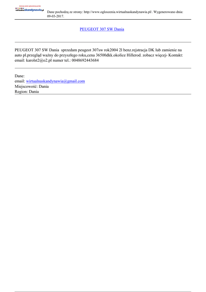 PEUGEOT 307 SW Dania - Wirtualnaskandynawia