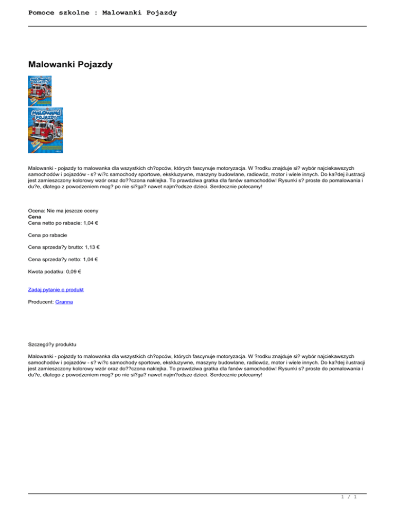 Pomoce szkolne : Malowanki Pojazdy