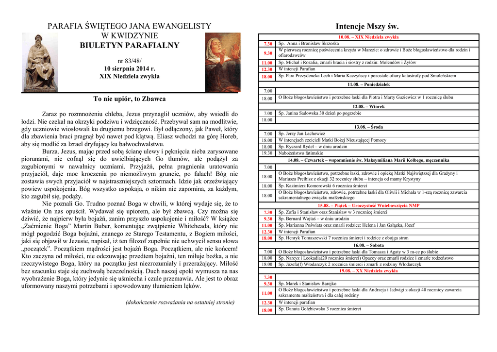 pobierz biuletyn - Parafia pw św. Jana Ewangelisty