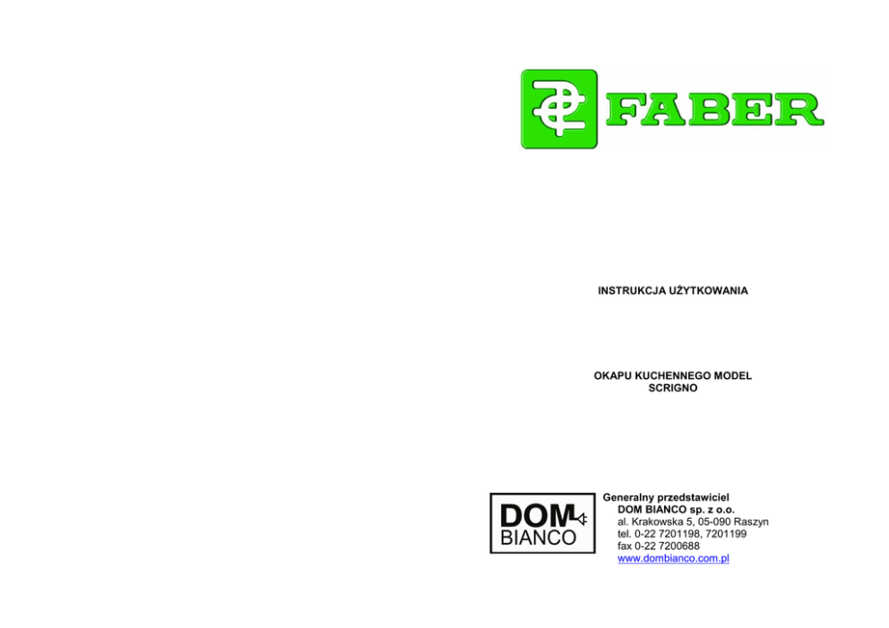 INSTRUKCJA UśYTKOWANIA OKAPU KUCHENNEGO MODEL SCRIGNO Generalny przedstawiciel DOM BIANCO sp. z o.o. al. Krakowska 5, 05-090 Raszyn tel. 0-22 7201198, 7201199 fax 0-22 7200688 www.dombianco.com.pl -1Spis treści 1. Zalecenia i sugestie 2. Charakterystyki 3. Instalacja 4. UŜytkowanie 5. Obsługa bieŜąca 1 3 4 7 8 -9- -2• • WłoŜyć nową Ŝarówkę tego samego typu upewniając się, Ŝe obie nóŜki są prawidłowo umieszczone w gniazdku w oprawce. Przykręcić ramkę oprawki Ŝarówki. Symbol umieszczony na wyrobie lub jego opakowaniu oznacza, Ŝe dany sprzęt po zuŜyciu nie moŜe być traktowany jako odpad komunalny. Powinien być dostarczony do odpowiedniego punktu skupu i recyklingu sprzętu elektrycznego i elektronicznego. Zapewniając prawidłową utylizacje zuŜytego urządzenia pomagamy w zapobieganiu niepoŜądanym konsekwencjom dla środowiska i zdrowia ludzi, które mogłyby powstać w przypadku nieodpowiedniego pozbycia się urządzenia. Więcej szczegółów na temat utylizacji danego sprzętu uzyskacie Państwo w organach samorządu terytorialnego i lokalnej administracji państwowej lub w sklepie, w którym wyrób został zakupiony. Zagadnienia utylizacji tego typu wyrobów w Rzeczpospolitej Polskiej reguluje ustawa z dnia 19 lipca 2005 r. o zuŜytym sprzęcie elektrycznym i elektronicznym wraz z późniejszymi zmianami zgodna z odpowiednią dyrektywą Unii Europejskiej. 1. ZALECENIA I SUGESTIE Instrukcja uŜytkowania dotyczy kilku wersji urządzenia, w związku z czym moŜecie Państwo znaleźć w niej informacje, które nie muszą dotyczyć posiadanej przez Państwa wersji. INSTALACJA • Producent oraz Generalny Przedstawiciel nie ponoszą Ŝadnej odpowiedzialności materialnej i/lub prawnej za szkody powstałe w wyniku niewłaściwej instalacji urządzenia • Minimalna bezpieczna odległość między najwyŜszym punktem płyty grzewczej a dolną powierzchnią okapu kuchennego wynosi 650 mm. • NaleŜy sprawdzić, czy napięcie w domowej instalacji elektrycznej odpowiada wartości podanej na tabliczce znamionowej umieszczonej wewnątrz korpusu okapu. • Dla urządzeń z I klasą bezpieczeństwa naleŜy zapewnić właściwe ich uziemienie. • Okap kuchenny naleŜy łączyć z pionami i kanałami wentylacyjnymi za pomocą rur o minimalnej średnicy 120 mm. Długość duktu powietrznego powinna być moŜliwie mała. • Nie wolno podłączać okapu kuchennego do kanałów dymowych i spalinowych odprowadzających spaliny z innych urządzeń (termy, bojlery, kominki itp.). • JeŜeli okap kuchenny jest stosowany w pomieszczeniu razem z innym urządzeniem niezasilanym energią elektryczną (np. urządzeniem spalającym gaz), to naleŜy zapewnić dopływ odpowiedniej ilości świeŜego powietrza do pomieszczenia w celu zapobieŜenia nawrotowi spalin. Kuchnia powinna być wyposaŜona w otwór ścienny w zewnętrznej ścianie budynku w celu zagwarantowania dopływu czystego powietrza. UśYTKOWANIE • Okap kuchenny został zaprojektowany wyłącznie do stosowania w gospodarstwach domowych w celu usuwania zapachów powstających w kuchniach. • Nie wolno stosować okapu do celów innych, niŜ podane wyŜej. • Podczas pracy okapu nie wolno dopuścić, aby znajdował się pod nim wysoki, nieosłonięty płomień. -3- -8• • • • • Wielkość płomienia naleŜy regulować tak, aby nie wychodził on poza obręb dna naczynia ustawionego na palniku. Podczas smaŜenia w głębokim tłuszczu naleŜy zawsze pilnować naczynia, gdyŜ istnieje zagroŜenie zapalenia się tłuszczu. Pod okapem kuchennym nie wolno przygotowywać potraw flambowanych („płonących”). Urządzenie nie powinno być obsługiwane przez osoby (łącznie z dziećmi) o ograniczonych zdolnościach fizycznych, somatycznych lub umysłowych, a takŜe niemające odpowiedniego doświadczenia i wiedzy, dopóki nie zostaną one poinstruowane lub nie będą znajdować się pod odpowiednim nadzorem. Zawsze naleŜy kontrolować dzieci aby nie bawiły się urządzeniem. OBSŁUGA BIEśĄCA • Przed przystąpieniem do jakichkolwiek prac związanych z obsługą bieŜącą okap naleŜy wyłączyć lub odłączyć od zasilania elektrycznego. • Filtry czyścimy i/lub wymieniamy po upływie czasu podanego w dalszej części niniejszej instrukcji. • Okap czyścimy za pomocą wilgotnej szmatki neutralnego detergentu w płynie. 2. CHARAKTERYSTYKI 2.1. Wymiary L.p. Ilość Opis 1 1 8 9 L.p. 7.2. 7.3. 11. 12a 12e L.p. 1 1 Ilość 2 2 6 6 2 Ilość 1 Korpus okapu z panelem sterowania, oświetleniem, wentylatorem i filtrami Kratka wylotowa powietrza Kołnierz redukcyjny Ø150-120 mm Opis Uchwyty korpusu okapu Podkładki dystansowe Kołki rozporowe Wkręty Wkręty 2,9x9,5 Opis Instrukcja montaŜu i uŜytkowania 5. OBSŁUGA BIEśĄCA 5.1. Filtry przeciw tłuszczowe Czyszczenie metalowych filtrów kasetowych • Filtry naleŜy czyścić co najmniej raz na dwa miesiące pracy lub częściej w przypadku bardzo intensywnego uŜytkowania. Mogą być myte w zmywarkach do naczyń. • Filtry wyjmujemy pojedynczo naciskając w kierunku tyłu okapu i jednocześnie pociągając w dół. • Podczas mycia naleŜy uwaŜać, aby filtry nie były wyginane. Przed ponownym zamocowaniem filtry naleŜy dokładnie wysuszyć. • Po załoŜeniu filtrów w korpusie w otworze powinna być widoczna płytka zwalniania zaczepu. 5.2. Filtry z węgla aktywowanego (wersja pochłaniacz) Wymiana filtrów węglowych • Filtry węglowe nie mogą być myte ani czyszczone. NaleŜy je wymieniać co najmniej raz na cztery miesiące pracy lub częściej w przypadku bardzo intensywnego uŜytkowania. • Do wymiany filtrów węglowych naleŜy wyjąć filtry przeciw tłuszczowe. • Wyjąć filtr węglowy odkręcając go z obudowy zespołu wentylatora. • WłoŜyć nowy filtr i zamocować go na obudowie. • WłoŜyć filtry przeciw tłuszczowe. 5.3. Oświetlenie Wymiana 20 W Ŝarówek halogenowych • Wykręcić dwa wkręty podtrzymujące ramkę opra