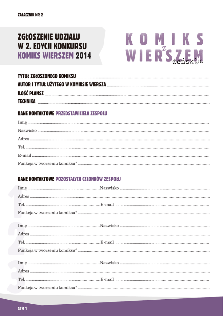 zgłoszenie udziału w 2. edycji konkursu komiks wierszem 2014