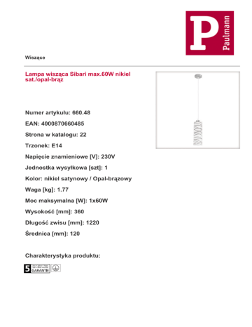 Wiszące Lampa wisząca Sibari max.60W nikiel sat./opal-brąz Numer artykułu: 660.48 EAN: 4000870660485 Strona w katalogu: 22 Trzonek: E14 Napięcie znamieniowe [V]: 230V Jednostka wysyłkowa [szt]: 1 Kolor: nikiel satynowy / Opal-brązowy Waga [kg]: 1.77 Moc maksymalna [W]: 1x60W Wysokość [mm]: 360 Długość zwisu [mm]: 1220 Średnica [mm]: 120 Charakterystyka produktu: