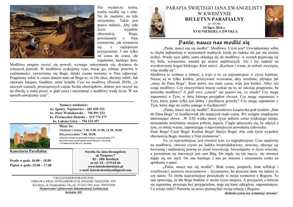 pobierz biuletyn - Parafia pw św. Jana Ewangelisty