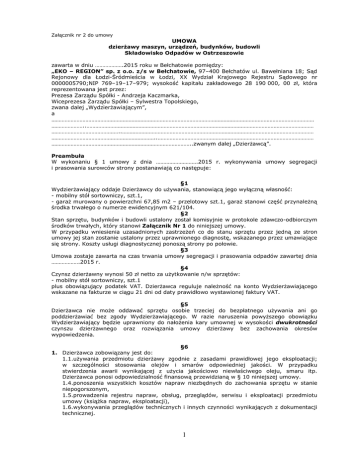 UMOWA dzierŜawy maszyn, urządzeń, budynków - eko