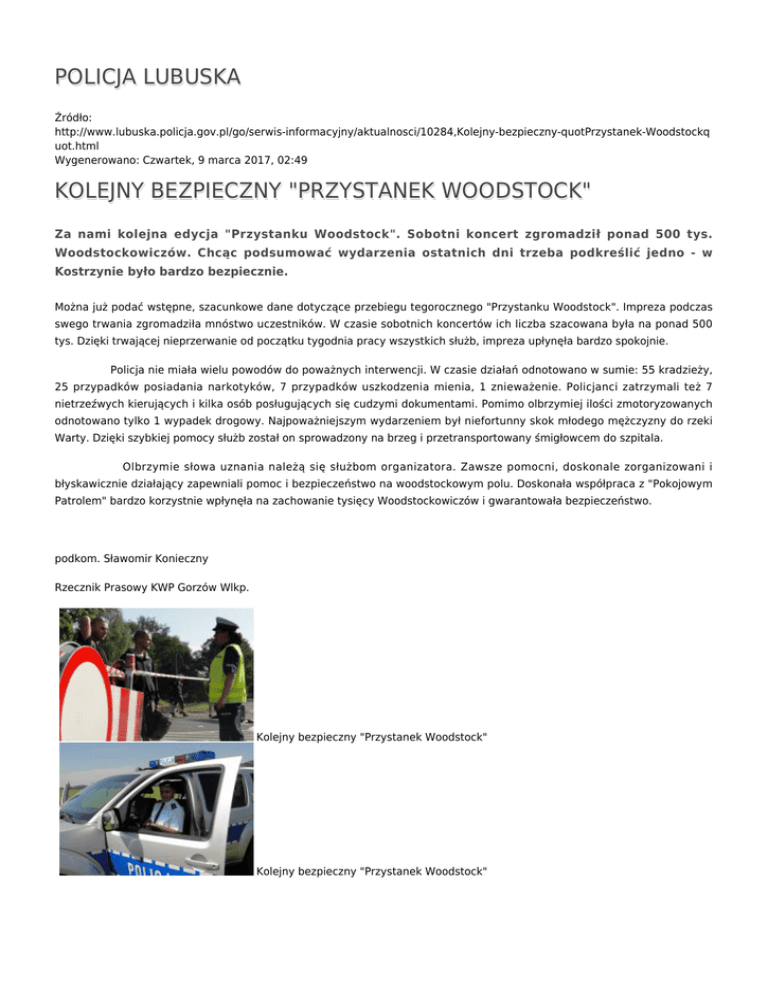 policja lubuska kolejny bezpieczny "przystanek woodstock"