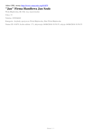 "Jan" Firma Handlowa Jan Szulc, Wola Bledowska, 33