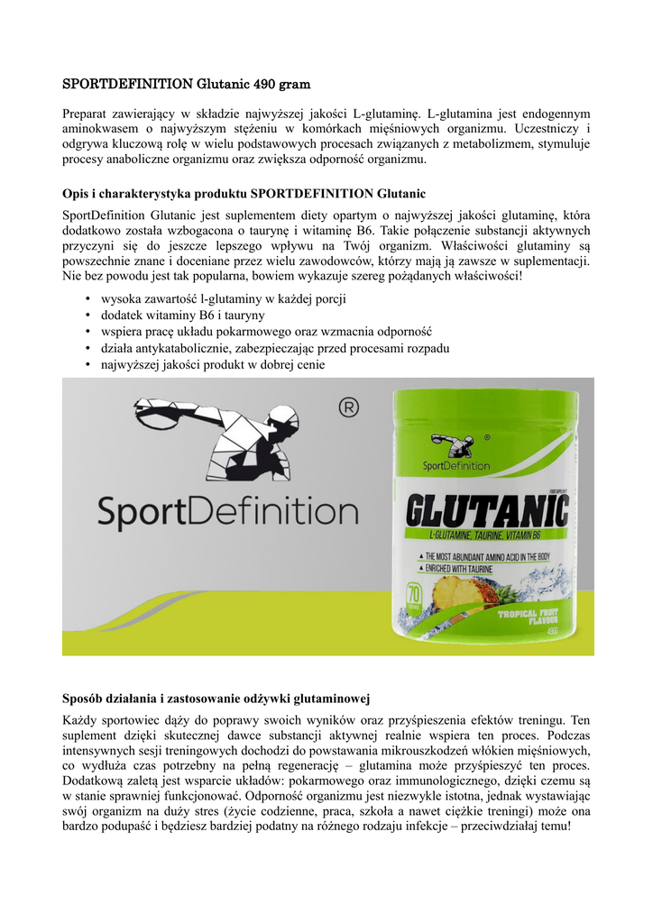 SPORTDEFINITION Glutanic 490 gram Preparat zawierający w