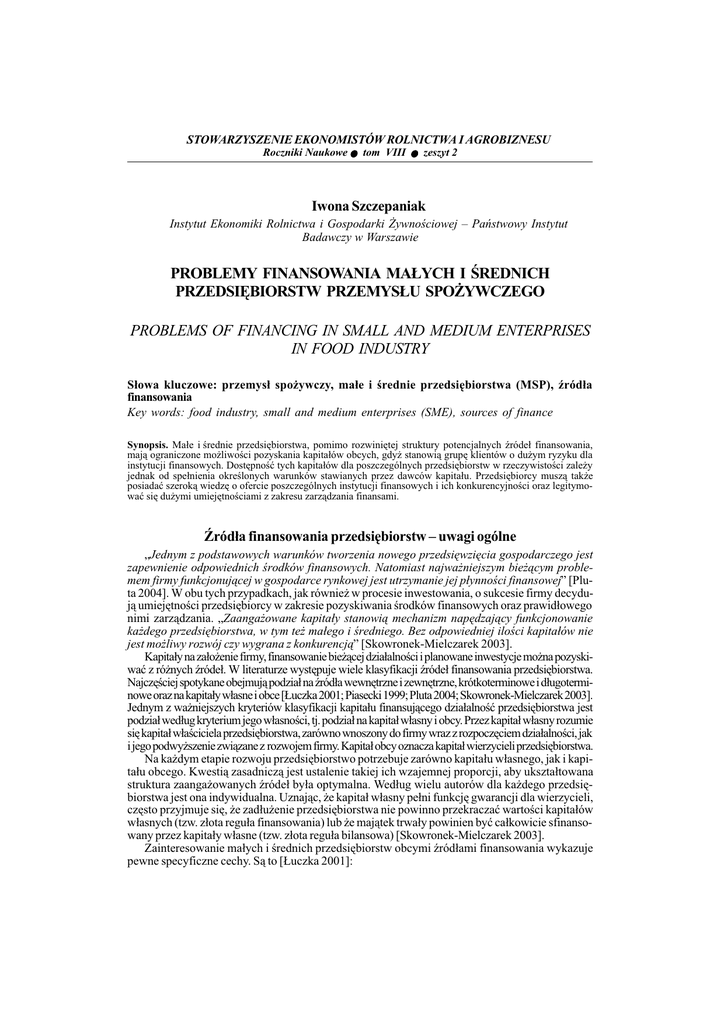 problemy finansowania ma£ych i średnich przedsiębiorstw przemys