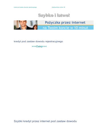 _____________Użytkowników online: 48 kredyt pod zastaw dowodu rejestracyjnego kredyt pod zastaw dowodu rejestracyjnego _______________>>>Dalej<<< Istnieją pewne, minimalne wymogi dotyczące wartości pojazdu, rocznika lub przebiegu, ale zazwyczaj te kwestie ustalane są indywidualnie. Swoją pozycję zawdzięczamy połączeniu wieloletniego doświadczenia z nowoczesnym podejściem do naszych Klientów. O pożyczkę możesz aplikować na dwa sposoby: podajesz swoje dane i dane samochodu przez telefon albo wysyłasz skan lub zdjęcie dowodu rejestracyjnego przez internet wraz ze wzmianką o dacie ważności polisy OC i aktualnym przebiegu auta. Fundamentem naszej codziennej działalności są szeroko rozumiane kredyty, udzielane na terenie Elbląga. Specjalizujemy się w sprzedaży kredytów gotówkowych, kredytów dla małych i średnich firm, a także produktów hipotecznych takich jak kredyty hipoteczne, pożyczki hipoteczne, refinansowanie kredytów i kredyty konsolidacyjne pod zastaw hipoteki. Jeżeli potrzebujesz trochę dodatkowej gotówki pomyśl o skorzystaniu z pożyczki pod zastaw samochodu z możliwością dalszego użytkowania w trakcie spłaty. Zamiast odwiedzać różne firmy kredytowe w Elblągu, biegać od banku do banku tracąc przy tym swój cenny czas, odwiedź naszą firmę. Jeżeli masz pilny rachunek do zapłacenia, kontrahent zalega z płatnościami albo jakieś przedsięwzięcie wisi na włosku z powodu braku niedużej kwoty ten rodzaj pożyczki może być idealny dla Ciebie. Pierwszy sposób ma swoje plusy, ponieważ możesz szybko uzyskać informację o potencjalnej kwocie pożyczki i warunkach spłaty. Stosownie do obowiązków informacyjnych nałożonych ustawą o kredycie konsumenckim Dom Finansowy QS Sp. Wybierzemy dla Ciebie najlepsze rozwiązania (kredyty idealnie dopasowane do Twoich indywidualnych potrzeb i możliwości) w sposób niezwykle szybki, a jednocześnie profesjonalny. Supraxconsulting jest partnerem współpracującym Domu Finansowego QS, jednego z największych brokerów produktów finansowych w Polsce. Szybki kredyt przez internet pod zastaw dowodu rejestracyjnego _____________>>>Wypełnij nasz wniosek online<<<