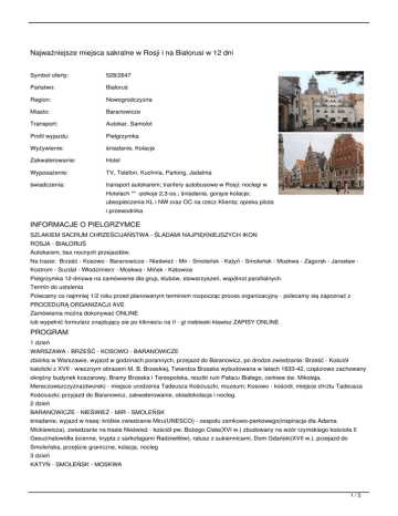 Przywilejem osoby Zamawiającej pielgrzymkę jest miejsce bezpłatne przy określonej liczbie uczestników.