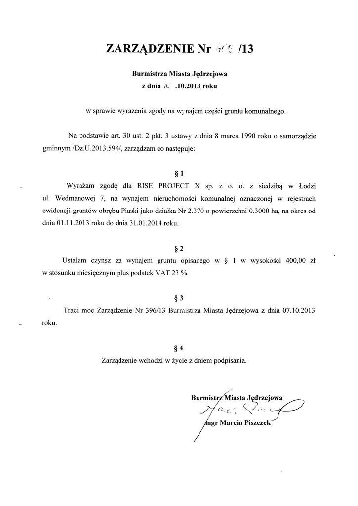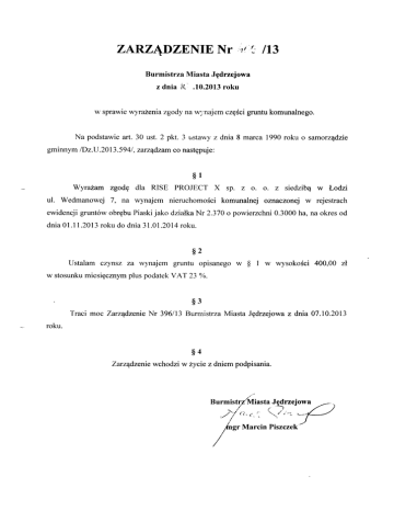 ZarzEdzeniewchodzi w 2ycie z dniem podpisania.
