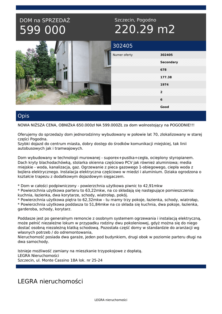 599 000 220.29 m2 - Legra Nieruchomości
