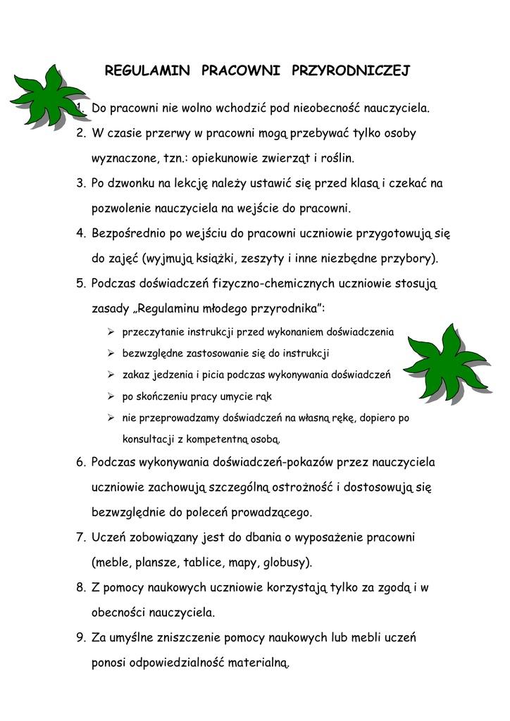 REGULAMIN PRACOWNI PRZYRODNICZEJ
