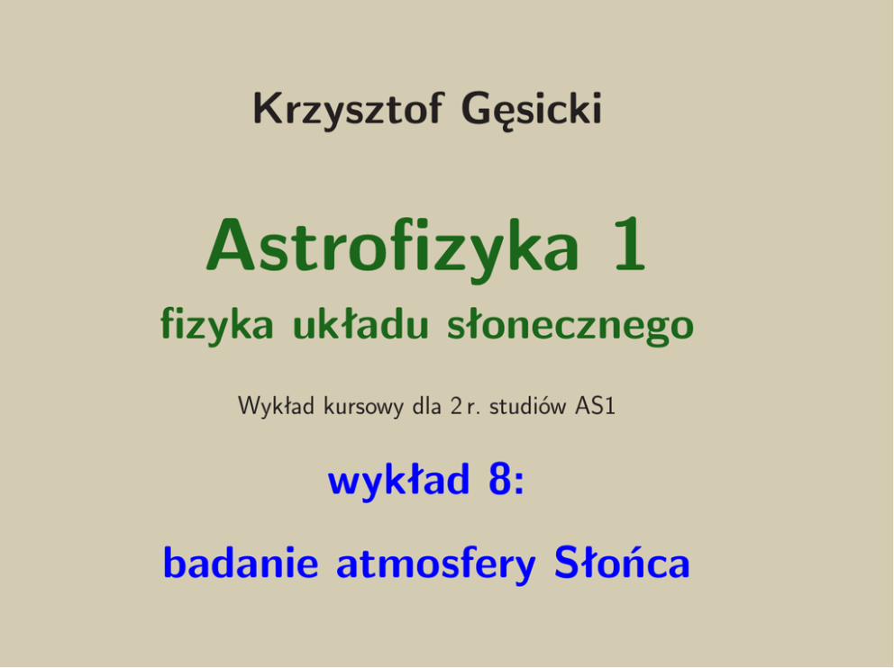 Krzysztof Gęsicki Astrofizyka 1 fizyka układu słonecznego Wykład kursowy dla 2 r. studiów AS1 wykład 8: badanie atmosfery Słońca widmo Słońca dobrze znane publikowane są atlasy, np. Wallace et al. ApJS 195(2011) analiza widma słonecznego tradycyjna – metodą krzywej wzrostu współczesna – dopasowanie obliczonych profili do obserwowanych Krzywa wzrostu Fυ Fc A R υ Definiujemy absorpcję w linii: Fc − Fν Fc Definiujemy tzw. szerokość równoważną linii: Aν = Wν = Z∞ 0 Aν dν wprowadzamy β jako stosunek nieprzezroczystości w linii do kontinuum χl φν χ0 = H(a, x) = β0H(a, x) κc κc √ 2 ! hν 1 1 πe fluNl∗ c πe2 ∗ − kT √ = fluNl 1 − e β0 = mc κc ∆νD π mc kc v0ν β= uwzględniamy tzw. profil absorpcyjny Voigta H(a, x) można pokazać że w płaskiej warstwie, o jednorodnej gęstości i temperaturze, oraz w LTE W = W (a, β0) = Z∞ 0 β0H(a, x) dx 1 + β0H(a, x) Zależność W od β0 nazywamy krzywą wzrostu ważne: w β0 ukryta jest gęstość Nl absorbujacych atomów krzywą wzrostu szacujemy przy pomocy uproszczonych rachunków albo obliczamy z dokładnego modelu atmosfery 1. Na początku, gdy mamy mało atomów, każdy atom dodany będzie zdolny absorbować. Na siłę linii będzie wpływać tylko jądro dopplerowskie, skrzydła będą przezroczyste. Jest to liniowa część krzywej wzrostu. 2. W pewnym momencie jądro linii stanie się całkiem nieprzezroczyste, wszystkie fotony, które mogą zostać zaabsorbowane, zostaną zaabsorbowane. Dopóki nie rozwiną się skrzydła, dodatkowe atomy niewiele zmienią w profilu. Jest to część nasycona (płaska) krzywej wzrostu. 3. Kiedy uzbiera się wystarczająco dużo absorbera, by skrzydła stały się znaczące, szerokość równoważna linii znów wzrasta. Mówimy wówczas o części tłumieniowej lub pierwiastkowej krzywej wzrostu. wykorzystujemy krzywą wzrostu do analizy składu chemicznego gdy obserwowane linie nie pozwalają na dokładne dopasowywanie profili kiedyś dla Słońca współcześnie np. dla linii zakresu rentgenowskiego Modele atmosfer gwiazd Problem sporządzenia modelu atmosfery gwiazdowej polega na znalezieniu takiej struktury warstwy gazowej, żeby spełnione były jednocześnie równania równowagi hydrostatycznej oraz zachowania energii Przez „strukturę” rozumiemy zależność od współrzędnej z takich wielkości, jak temperatura, gęstość, ciśnienie, głębokość optyczna chcemy także znać widmo promieniowania opuszczającego powierzchnię gwiazdy Konstruowanie modelu atmosfery gwiazdowej z reguły przebiega w dwóch etapach, z których każdy zależny jest od tego drugiego Jeden z tych etapów, to rozwiązywanie równania przepływu promieniowania w atmosferze o zadanej strukturze, drugi, to obliczanie parametrów gazu będącego w równowadze hydrostatycznej przy zadanym polu promieniowania Procedura polega na alternatywnym rozwiązywaniu obu części dopóki iteracje nie zbiegną się. Pole promieniowania, od którego zaczynamy iteracje, najprawdopodobniej nie jest tym właściwym i nie spełnia warunku równowagi promienistej. Wyznaczone odchyłki od równowagi promienistej są następnie wykorzystywane do korekty struktury atmosfery W „klasycznym” ujęciu parametrami definiującymi model atmosfery gwiazdowej są: temperatura efektywna, Teff , określająca równowagowy strumień energii promieniowania; przyspieszenie grawitacyjne, g, określające równowagę hydrostatyczną oraz skład chemiczny Zmienną, której wartość poprawiamy w kolejnych iteracjach, jest przebieg temperatury T (z) z głębokością z. cztery podstawowe równania wyznaczające budowę gwiazdy znane są od dawna: równanie ciągłości określające przebieg gęstości z głębokością 1 ∂r = ∂m 4π r2 ρ równanie równowagi hydrostatycznej wyznaczające gradient ciśnienia ∂P Gm =− ∂m 4π r4 równanie produkcji energii w reakcjach jądrowych ∂L = ǫ − ǫν − ǫg ∂m równanie energii, czyli równanie równowagi promienistej, pozwalające wyznaczyć gradient temperatury ∂T GmT ∂ ln T =− ∇ gdzie ∇ = ∂m 4π r4 P ∂ ln P r to odległość od środka gwiazdy, m to masa wewnątrz takiej sfery ǫ to tempo produkcji energii, ǫν – straty na neutrinach, ǫg – praca wykonana na gazie przy ekspansji lub kontrakcji mamy cztery równania ale pięć zmiennych: r, ρ, P, L, ,T dodatkowe – to równanie stanu w postaci np. ρ = ρ(P, T, µ) dochodzą jeszcze równania na nieprzezroczystość χν (ρ, T ) tempa reakcji jądrowych ǫ skład chemiczny µ i jego zmiany przez reakcje jądrowe i mieszanie transport energii we wnętrzu – promienisty, konwektywny i przewodnictwo ewentualne dodatkowe procesy mieszające oraz dyfuzję utratę masy przez wiatr gwiazdowy oczywiście w modelu samej atmosfery uwzględniamy tylko wybrane równania przebieg temperatury w Słońcu w modelu półempirycznym VAL z 1973 modele Kurucza z rozdzielczością R=100 i R=100 000 widmo Słońca w całości fragment w okolicy linii CaII skład chemiczny Słońca jeszcze do niedawna myśleliśmy że Słońce znamy bardzo dobrze przecież mierzymy strumień bolometryczny promieniowania wyłapujemy neutrina rejestrujemy i analizujemy oscylacje okazało się jednak, że nie znamy wystarczająco dokładnie składu chemicznego metody wyznaczania składu chemicznego Słońca obejmują: analizę obserwowanego widma od IR po X He występuje w wietrze i koronie, ma linie w dalekim UV Li, Be, B mają mało linii widmowych C, N, O są obecne w widmie fotosferycznym i koronalnym, w postaci atmowej i molekularnej cięższe pierwiastki najlepiej badać w meteorytach te dane wydają się najbardziej wiarygodne, są stosowane gdzie tylko możliwe Kr, Xe – modele teoretyczne nukleosyntezy w procesach s, przekroje reakcji są znane z laboratoriów pomiary wiatru słonecznego in situ i rozpędzonych cząsteczek analiza danych heliosejsmicznych skala astronomiczna obfitości jest kali
