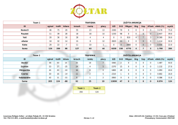 Team 1 TRAFIENIA ZUŻYTA AMUNICJA ID zginał trafił bilans