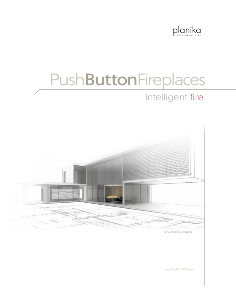 PushButtonFireplaces intelligent fire © PLANIKA | Ver. 24022016 www.PLANIKAfires.pl PushButtonFireplaces PrimeFire PrimeFire Nowoczesny kominek - intuicyjna obsługa Prawdziwy ogień na wyciągnięcie ręki CHARAKTERYSTYKA: ●● Łatwy montaż Bez zapachu / bez popiołu / bez dymu ●● Możliwość łączenia kilku modułów ●● Opcjonalnie pilot zdalnego sterowania ●● Nie wymaga dodatkowych instalacji ●● Zaawansowane czujniki bezpieczeństwa ●● Bez konieczności montażu kratki wentylacyjnej ●● Automatyczne wyłączanie w przypadku błędu ●● Nie wymaga systemu kominowego ●● Child Lock – zabezpieczenie dziecięce ●● Wymaga podłączenia do sieci elektrycznej ●● Zaawansowany mikroprocesor ●● Do użytku wewnętrznego ●● Wyświetlacz diodowy ●● Ekologiczny ●● Panel sterowania ●● Certyfikat TÜV ●● Intuicyjny w obsłudze ●● 2-stopniowa regulacja wysokości płomienia WYMIARY: 139 mm 5 12 " Technologia BEV* ●● 245 mm 9 58 " ●● Planika INTELLIGENT HOT PAT. PEND. 100 mm 3 15 16 " FUEL FIRE READY ECO START STOP ERROR 500 mm 19 11 16 " 700 mm 27 9 16 " 100 mm 3 15 16 " *Technologia BEV – opatentowany proces czystego spalania oparów biopaliwa. Ogień nie ma bezpośredniego kontaktu z paliwem. DANE TECHNICZNE: Pojemność: 2,75 L / [US] 0,7 gal / [UK] 0,6 gal Czas palenia: ~5 h Moc grzewcza: 4,0 kW / 13648 BTU WYMAGANIA INSTALACJI WEWNĘTRZNEJ: Waga netto: 11 kg / 24 Ibs Cyrkulacja powietrza: min. 1/h Minimalne wymiary pomieszczenia: 58 m3 / 2039 ft3 (22 m2 / 237 ft2 przy wysokości 2,6 m / 8,53 ft) Zasilanie: 230 V / 115V 50 mm 1 15/16 " min. 1000 mm min. 39 3/8 " INSTALACJA: min. 1000 mm min. 39 3/8 " min. 1500 mm min. 59 1/16 " Materiały niepalne Wykończenie: TOP: stal malowana proszkowo na kolor czarny, OBUDOWA: stal ocynkowana www.PLANIKAfires.pl START STOP F F I R E ECO E W S E N S O Planika N min.150mm min.350mm min.5 7/8" min.13 3/4" Materiały niepalne mm .710 16" min27 15/ m . min in.25 n mi .10 5m 1/16 m " pobierz instrukcję obsługi