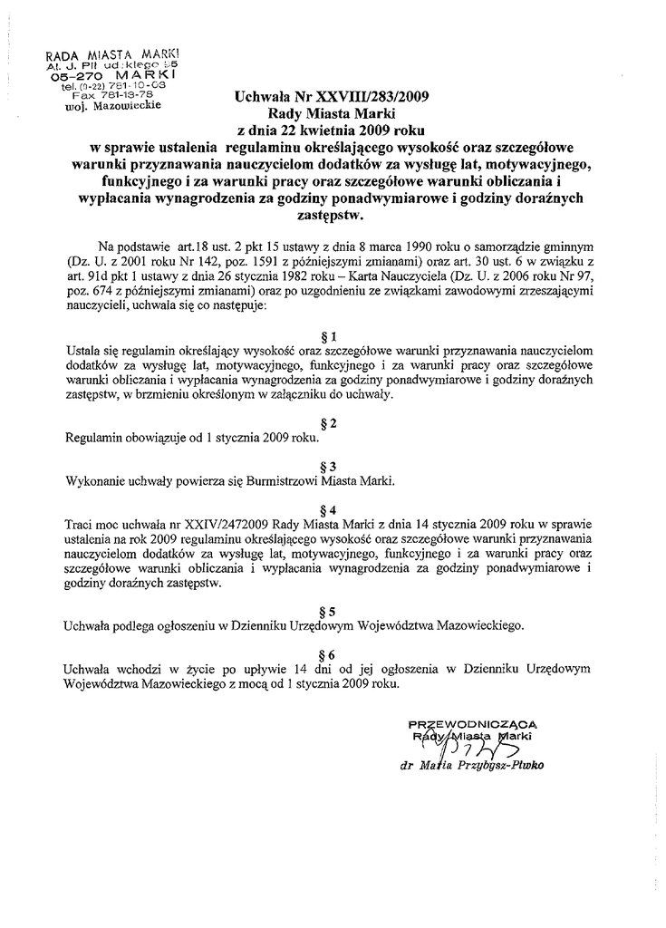 Traci moc uchwala nr XXIV/2472009 Rady Miasta Marki z dnia 14 stycznia 2009 roku w sprawie