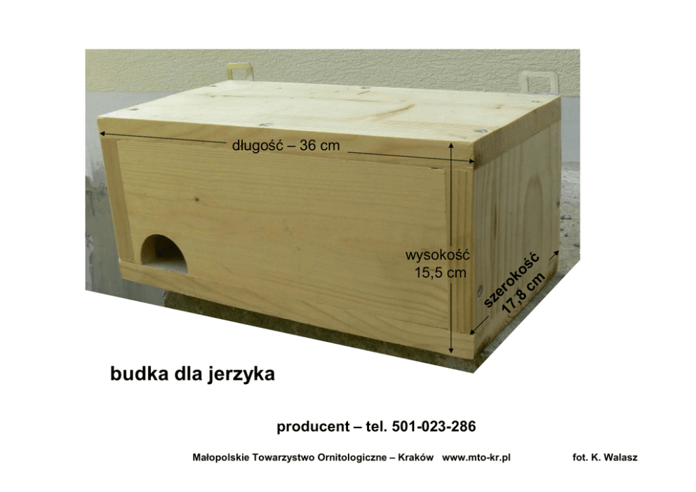 ugo – 36 cm wysoko 15,5 cm o k o cm r e 8 sz 1 7 , budka dla jerzyka producent – tel. 501-023-286 Ma opolskie Towarzystwo Ornitologiczne – Kraków www.mto-kr.pl fot. K. Walasz budka dla jerzyka – wysoko boku Ma opolskie Towarzystwo Ornitologiczne – Kraków www.mto-kr.pl fot. K. Walasz budka dla jerzyka – szeroko boku Ma opolskie Towarzystwo Ornitologiczne – Kraków www.mto-kr.pl fot. K. Walasz budka dla jerzyka – wymiary otworu 3,5 cm x 5,5 cm Ma opolskie Towarzystwo Ornitologiczne – Kraków www.mto-kr.pl fot. K. Walasz budki dla jerzyków wpuszczone w styropian Ma opolskie Towarzystwo Ornitologiczne – Kraków www.mto-kr.pl fot. K. Walasz budki dla jerzyków wpuszczone w styropian - miejsce zamocowania Ma opolskie Towarzystwo Ornitologiczne – Kraków www.mto-kr.pl fot. K. Walasz budki dla jerzyków wpuszczone w styropian - umieszczone po dwie razem Ma opolskie Towarzystwo Ornitologiczne – Kraków www.mto-kr.pl fot. K. Walasz