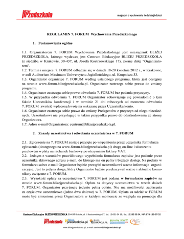 REGULAMIN 7. FORUM Wychowania Przedszkolnego 1