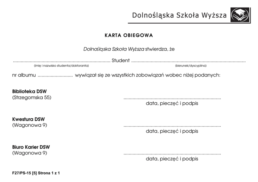 Karta obiegowa - DSW Dla studenta