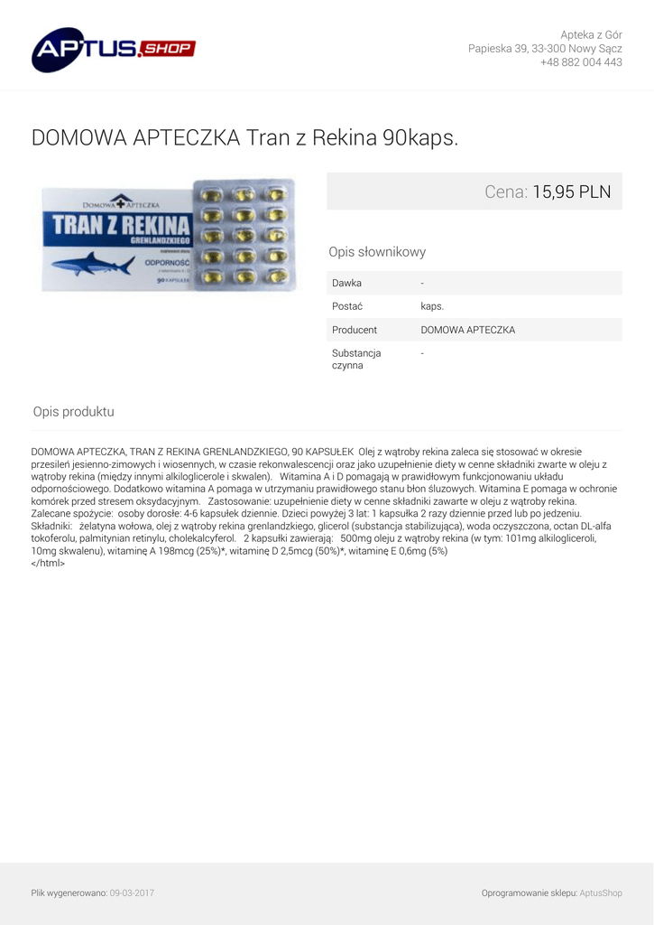 DOMOWA APTECZKA Tran z Rekina 90kaps.