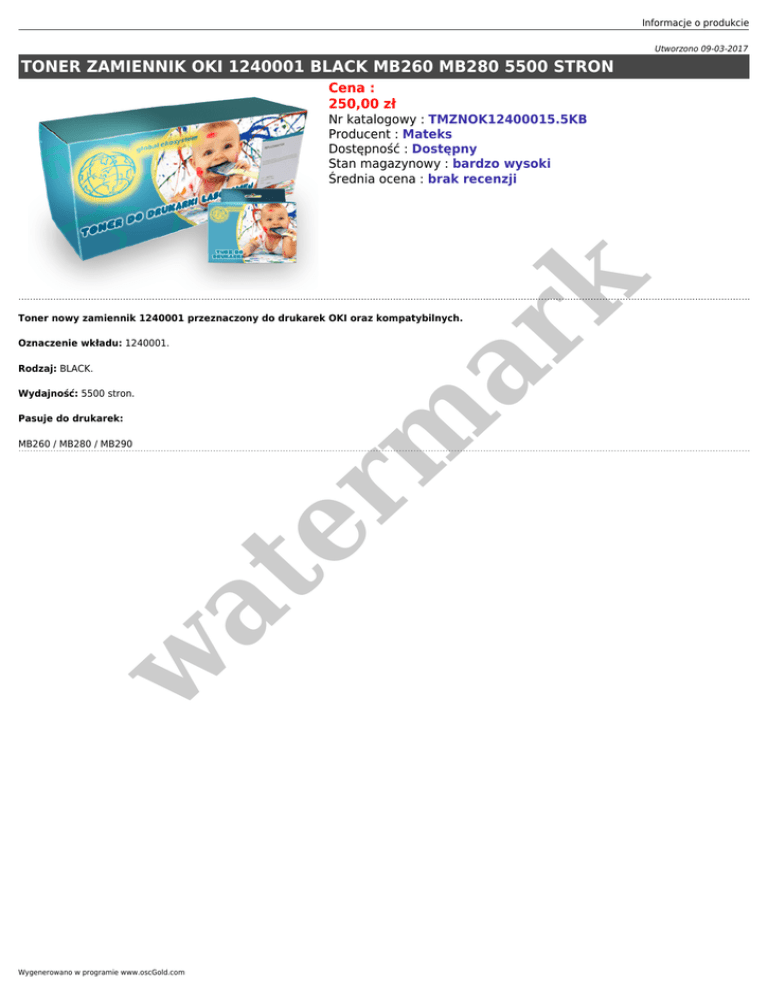 toner zamiennik oki 1240001 black mb260 mb280 5500