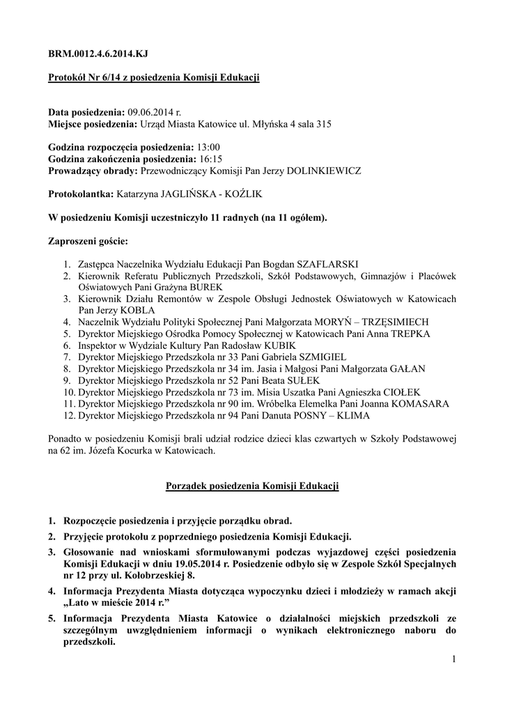 1 BRM.0012.4.6.2014.KJ Protokół Nr 6/14 z