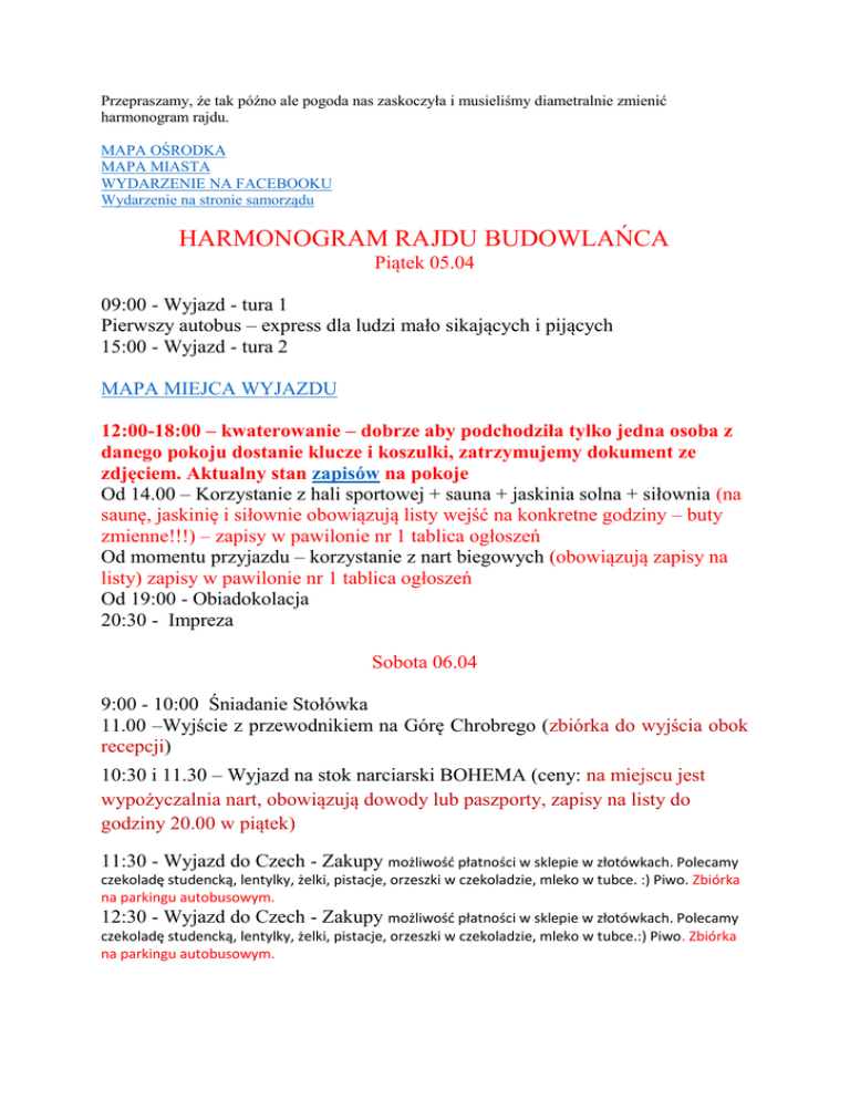 HARMONOGRAM RAJDU BUDOWLAŃCA