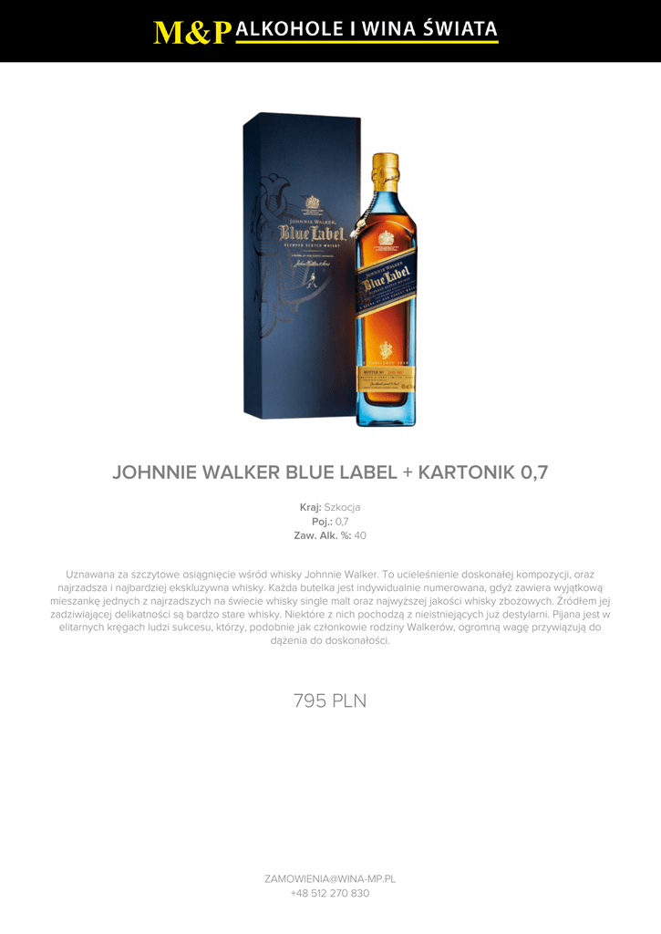 JOHNNIE WALKER BLUE LABEL + KARTONIK 0,7 795 PLN