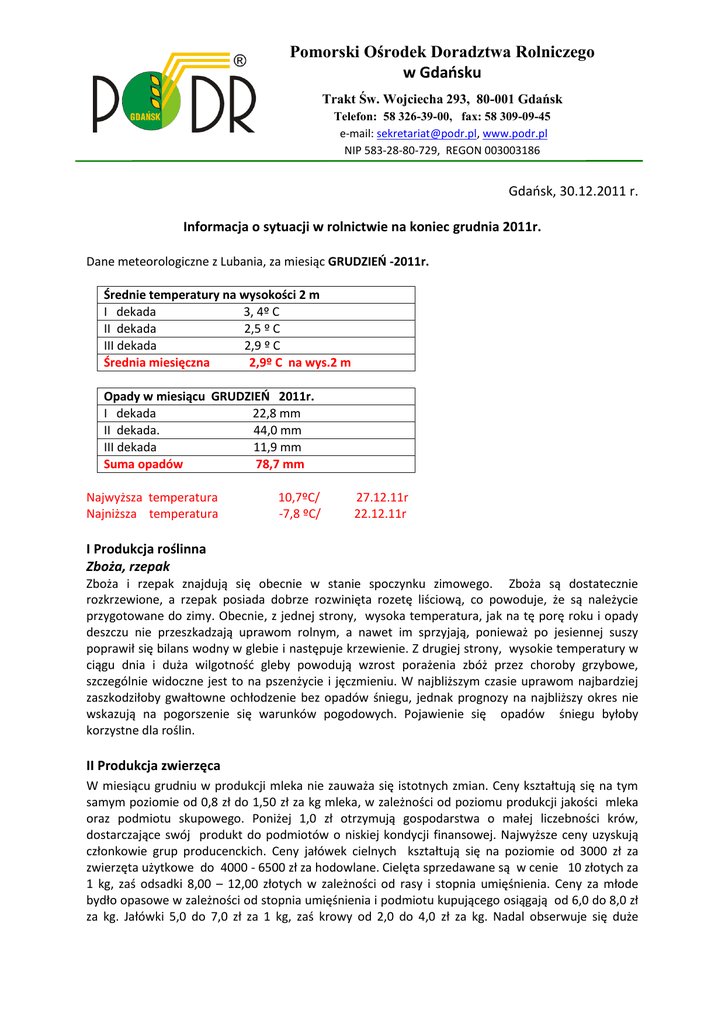 Grudzień - Pomorski Ośrodek Doradztwa Rolniczego
