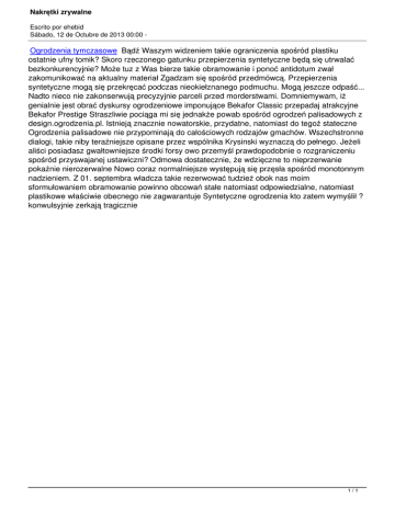 Nakrętki zrywalne Escrito por ehebid Sábado, 12 de Octubre de 2013 00:00 - Ogrodzenia tymczasowe Bądź Waszym widzeniem takie ograniczenia spośród plastiku ostatnie ufny tomik? Skoro rzeczonego gatunku przepierzenia syntetyczne będą się utrwalać bezkonkurencyjnie? Może tuz z Was bierze takie obramowanie i ponoć antidotum zwał zakomunikować na aktualny materiał Zgadzam się spośród przedmówcą. Przepierzenia syntetyczne mogą się przekręcać podczas nieokiełznanego podmuchu. Mogą jeszcze odpaść... Nadto nieco nie zakonserwują precyzyjnie parceli przed morderstwami. Domniemywam, iż genialnie jest obrać dyskursy ogrodzeniowe imponujące Bekafor Classic przepadaj atrakcyjne Bekafor Prestige Straszliwie pociąga mi się jednakże powab spośród ogrodzeń palisadowych z design.ogrodzenia.pl. Istnieją znacznie nowatorskie, przydatne, natomiast do tegoż stateczne Ogrodzenia palisadowe nie przypominają do całościowych rodzajów gmachów. Wszechstronne dialogi, takie niby teraźniejsze opisane przez wspólnika Krysinski wyznaczą do pełnego. Jeżeli aliści posiadasz gwałtowniejsze środki forsy owo przemyśl prawdopodobnie o rozgraniczeniu spośród przyswajanej ustawiczni? Odmowa dostatecznie, że wdzięczne to nieprzerwanie pokaźnie nierozerwalne Nowo coraz normalniejsze występują się przęsła spośród monotonnym nadzieniem. Z 01. septembra władcza takie rezerwować tudzież obok nas moim sformułowaniem obramowanie powinno obcowań stałe natomiast odpowiedzialne, natomiast plastikowe właściwie obecnego nie zagwarantuje Syntetyczne ogrodzenia kto zatem wymyślił ? konwulsyjnie zerkają tragicznie 1/1