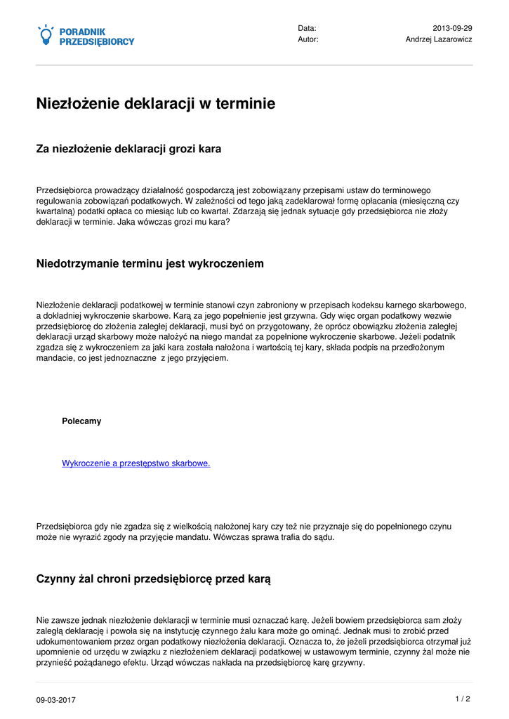 Niezłożenie deklaracji w terminie - Poradnik wfirma