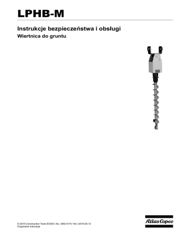 LPHB-M Instrukcje bezpieczeństwa i obsługi Wiertnica do gruntu © 2015 Construction Tools EOOD | No. 3392 5115 14d | 2015-03-12 Oryginalne instrukcje LPHB-M SPIS TREŚCI SPIS TREŚCI Wstęp. . . . . . . . . . . . . . . . . . . . . . . . . . . . . . . . . . . . . . . . . . . . . . . . . . . . . . . . . . . . . . . . . . . . . . . . . . . . . 5 Uwaga na temat instrukcji bezpieczeństwa i obsługi . . . . . . . . . . . . . . . . . . . . . . . . . . . . . . . . . . 5 Instrukcje dotyczące bezpieczeństwa. . . . . . . . . . . . . . . . . . . . . . . . . . . . . . . . . . . . . . . . . . . . . . . . 6 Ostrzeżenia użyte w tekście. . . . . . . . . . . . . . . . . . . . . . . . . . . . . . . . . . . . . . . . . . . . . . . . . . . . . . 6 Osobiste środki ostrożności i wymagane kwalifikacje. . . . . . . . . . . . . . . . . . . . . . . . . . . . . . 6 Transport. . . . . . . . . . . . . . . . . . . . . . . . . . . . . . . . . . . . . . . . . . . . . . . . . . . . . . . . . . . . . . . . . . . . . 6 Instalacja, składowanie, konserwacja i utylizacja.. . . . . . . . . . . . . . . . . . . . . . . . . . . . . . . . . . . 6 Działanie. . . . . . . . . . . . . . . . . . . . . . . . . . . . . . . . . . . . . . . . . . . . . . . . . . . . . . . . . . . . . . . . . . . . . . 6 Kontrola. . . . . . . . . . . . . . . . . . . . . . . . . . . . . . . . . . . . . . . . . . . . . . . . . . . . . . . . . . . . . . . . . . . . . . 6 Środki ochrony osobistej. . . . . . . . . . . . . . . . . . . . . . . . . . . . . . . . . . . . . . . . . . . . . . . . . . . . . . . . 6 Środki odurzające, alkohol, leki. . . . . . . . . . . . . . . . . . . . . . . . . . . . . . . . . . . . . . . . . . . . . . . . . . 7 Maszyna robocza, środki ostrożności. . . . . . . . . . . . . . . . . . . . . . . . . . . . . . . . . . . . . . . . . . . . . 7 Instalacja, środki ostrożności. . . . . . . . . . . . . . . . . . . . . . . . . . . . . . . . . . . . . . . . . . . . . . . . . . . . . 7 Eksploatacja, środki ostrożności. . . . . . . . . . . . . . . . . . . . . . . . . . . . . . . . . . . . . . . . . . . . . . . . . . 8 Konserwacja, środki ostrożności. . . . . . . . . . . . . . . . . . . . . . . . . . . . . . . . . . . . . . . . . . . . . . . . 10 Składowanie, środki ostrożności. . . . . . . . . . . . . . . . . . . . . . . . . . . . . . . . . . . . . . . . . . . . . . . . . 11 Informacje ogólne. . . . . . . . . . . . . . . . . . . . . . . . . . . . . . . . . . . . . . . . . . . . . . . . . . . . . . . . . . . . . . . . . 12 Konstrukcja i przeznaczenie. . . . . . . . . . . . . . . . . . . . . . . . . . . . . . . . . . . . . . . . . . . . . . . . . . . . . 12 Główne komponenty. . . . . . . . . . . . . . . . . . . . . . . . . . . . . . . . . . . . . . . . . . . . . . . . . . . . . . . . . . . . 12 Symbole. . . . . . . . . . . . . . . . . . . . . . . . . . . . . . . . . . . . . . . . . . . . . . . . . . . . . . . . . . . . . . . . . . . . . . . 12 Tabliczka znamionowa. . . . . . . . . . . . . . . . . . . . . . . . . . . . . . . . . . . . . . . . . . . . . . . . . . . . . . . . . 13 Nalepka bezpieczeństwa. . . . . . . . . . . . . . . . . . . . . . . . . . . . . . . . . . . . . . . . . . . . . . . . . . . . . . . 13 Nalepka z danymi przepływu i obrotów. . . . . . . . . . . . . . . . . . . . . . . . . . . . . . . . . . . . . . . . . . . 13 Transport. . . . . . . . . . . . . . . . . . . . . . . . . . . . . . . . . . . . . . . . . . . . . . . . . . . . . . . . . . . . . . . . . . . . . . . . . 13 Podnoszenie urządzenia. . . . . . . . . . . . . . . . . . . . . . . . . . . . . . . . . . . . . . . . . . . . . . . . . . . . . . . . 13 Montaż. . . . . . . . . . . . . . . . . . . . . . . . . . . . . . . . . . . . . . . . . . . . . . . . . . . . . . . . . . . . . . . . . . . . . . . . . . . 14 Przewody. . . . . . . . . . . . . . . . . . . . . . . . . . . . . . . . . . . . . . . . . . . . . . . . . . . . . . . . . . . . . . . . . . . . . . 14 Szybkozłącza. . . . . . . . . . . . . . . . . . . . . . . . . . . . . . . . . . . . . . . . . . . . . . . . . . . . . . . . . . . . . . . . . . . 14 Olej hydrauliczny. . . . . . . . . . . . . . . . . . . . . . . . . . . . . . . . . . . . . . . . . . . . . . . . . . . . . . . . . . . . . . . 14 Regulacja ciśnienia. . . . . . . . . . . . . . . . . . . . . . . . . . . . . . . . . . . . . . . . . . . . . . . . . . . . . . . . . . . . . 14 Narzędzie robocze. . . . . . . . . . . . . . . . . . . . . . . . . . . . . . . . . . . . . . . . . . . . . . . . . . . . . . . . . . . . . . 15 Mocowanie i wyjmowanie narzędzia roboczego. . . . . . . . . . . . . . . . . . . . . . . . . . . . . . . . . . . 15 Działanie. . . . . . . . . . . . . . . . . . . . . . . . . . . . . . . . . . . . . . . . . . . . . . . . . . . . . . . . . . . . . . . . . . . . . . . . . . 15 Temperatura eksploatacji. . . . . . . . . . . . . . . . . . . . . . . . . . . . . . . . . . . . . . . . . . . . . . . . . . . . . . . . 15 Obszary zagrożenia. . . . . . . . . . . . . . . . . . . . . . . . . . . . . . . . . . . . . . . . . . . . . . . . . . . . . . . . . . . . . 16 Montaż. . . . . . . . . . . . . . . . . . . . . . . . . . . . . . . . . . . . . . . . . . . . . . . . . . . . . . . . . . . . . . . . . . . . . . . . . 16 Demontaż. . . . . . . . . . . . . . . . . . . . . . . . . . . . . . . . . . . . . . . . . . . . . . . . . . . . . . . . . . . . . . . . . . . . . . 16 Konserwacja. . . . . . . . . . . . . . . . . . . . . . . . . . . . . . . . . . . . . . . . . . . . . . . . . . . . . . . . . . . . . . . . . . . . . . 17 Codziennie. . . . . . . . . . . . . . . . . . . . . . . . . . . . . . . . . . . . . . . . . . . . . . . . . . . . . . . . . . . . . . . . . . . . . 17 Okresowe czynności konserwacyjne. . . . . . . . . . . . . . . . . . . . . . . . . . . . . . . . . . . . . . . . . . . . . 17 Składowanie. . . . . . . . . . . . . . . . . . . . . . . . . . . . . . . . . . . . . . . . . . . . . . . . . . . . . . . . . . . . . . . .