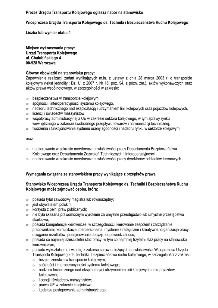 treść ogłoszenia - Urząd Transportu Kolejowego