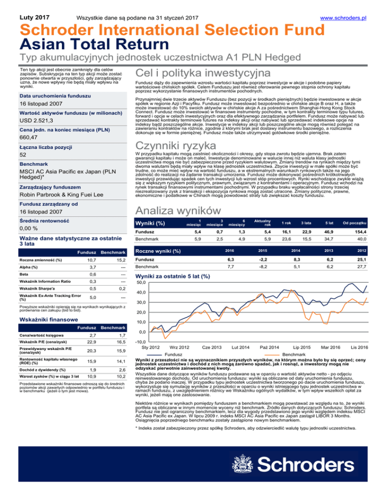 Niniejszy dokument nie stanowi oferty skierowanej do żadnej osoby ani próby ubiegania się przez jakąkolwiek osobę o uzyskanie zapisu na jednostki uczestnictwa Schroder International Selection Fund
