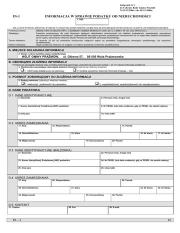 IN-1 INFORMACJA W SPRAWIE PODATKU OD NIERUCHOMOŚCI