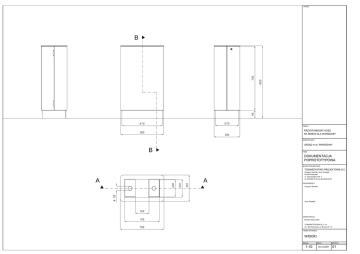Projekt przystanku komunikacji miejskiej w Warszawie ETAP 3 Dokumentacja architektoniczno-budowlana i wykonawcza: - wiaty przystankowej - słupka przystankowego stałego - słupka przystankowego tymczasowego - bariery odgradzającej pełnej i ażurowej - ławki wolnostojącej - kosza na śmieci - stojaka rowerowego - skrzyni na piasek - podświetlany słup ogłoszeniowy Wykonawca: Towarzystwo Projektowe s.c. G.Niwiński, J.Porębski Współpraca: Tejbrant Polska Sp. z o.o. Data: 3.12.2007 Kosz na śmieci Wewnętrzna konstrukcja kosza wykonana jest ze stali ocynkowanej ogniowo i przykręcona do betonowej podstawy, która z kolei może być przykręcona do płyt chodnika lub po odpowiednim przedłużeniu osadzona w gruncie. Cokół w postaci kołnierza ze stali nierdzewnej szczotkowanej o grubości 1 mm nasadzany jest na betonową podstawę. Do konstrukcji wewnętrznej przykręcony jest kapelusz ze stali nierdzewnej grubości 3 mm wyposażony w dwie uchylne popielniczki również ze stali nierdzewnej o grubości 1 mm. Kapelusz i popielniczki są szczotkowane. Osłona tylna kosza i drzwi wykonane są z blachy stalowej ocynkowanej o grubości 1,6 mm i malowanej lakierem proszkowym na kolor IGP 581ME71319A10 lub analogicznym. W drzwiach kosza zamontowany jest zamek patentowy. Projekt przystanku komunikacji miejskiej w Warszawie ETAP 3 Dokumentacja architektoniczno-budowlana i wykonawcza: - wiaty przystankowej - słupka przystankowego stałego - słupka przystankowego tymczasowego - bariery odgradzającej pełnej i ażurowej - ławki wolnostojącej - kosza na śmieci - stojaka rowerowego - skrzyni na piasek - podświetlany słup ogłoszeniowy Wykonawca: Towarzystwo Projektowe s.c. G.Niwiński, J.Porębski Współpraca: Tejbrant Polska Sp. z o.o. Data: 3.12.2007 Ławka wolnostojąca Konstrukcja ławki wykonana jest ze stali ocynkowanej ogniowo i malowanej lakierem proszkowym na kolor IGP 581ME71319A10 lub analogicznym. Pionowe elementy konstrukcji przykręcane są śrubami M10 do elementów mocujących fundamentu. Są trzy rodzaje fundamentów do stosowania w zależności od lokalizacji i infrastruktury podziemnej – żelbetowy pionowy, żelbetowa płyta i stalowa rama. Fundament osadzony jest w gruncie poniżej poziomu zabruku. Styk podpór ławki i zabruku wykończony jest kołnierzem ze stali nierdzewnej. Siedzisko ławki wykonane jest z impregnowanego drewna liściastego (olejowana dębina) i przykręcone od dołu do stalowej konstrukcji. Końcówki listew skręcone są prętem gwintowanym poprzez stalowe przekładki ocynkowane i malowane jak wyżej. Końcówki pręta są zasłonięte wklejonymi drewnianymi kołkami. Projekt przystanku komunikacji miejskiej w Warszawie ETAP 3 Dokumentacja architektoniczno-budowlana i wykonawcza: - wiaty przystankowej - słupka przystankowego stałego - słupka przystankowego tymczasowego - bariery odgradzającej pełnej i ażurowej - ławki wolnostojącej - kosza na śmieci - stojaka rowerowego - skrzyni na piasek - podświetlany słup ogłoszeniowy Wykonawca: Towarzystwo Projektowe s.c. G.Niwiński, J.Porębski Współpraca: Tejbrant Polska Sp. z o.o. Data: 3.12.2007 Słupek przystankowy stały Konstrukcja słupka wykonana jest z profili stalowych przyspawanych do stopy fundamentowej. Stopa Całość konstrukcji wewnętrznej jest ocynkowana ogniowo. fundamentowa jest przykręcona do żelbetowego prefabrykatu fundamentowego osadzonego w gruncie poniżej poziomu zabruku. Fundament występuje w dwóch wariantach (pionowy i płyta fundamentowa) i stosowany jest w zależności od infrastruktury podziemnej. Konstrukcja wewnętrzna obłożona jest po bokach profilami aluminiowymi, a z przodu blachą aluminiową. Profile i blacha są chromianowane i malowane proszkowo. Część górna RAL 9016 (traffic white), część dolna IGP 581ME71319A10 lub analogiczny. W środkowej części słupka znajduje się gablota dwustronna z wklejaną szybą hartowaną grubości 3 mm. Klejenie zamaskowane jest białą ramką naniesioną na szybę metodą sitodruku. Gablota zamykana jest na śruby patentowe znajdujące się w bocznym profilu. Gabloty zbudowane z profilu aluminiowego „Z” wysuwają się na boki na prowadnicach mocowanych do poprzecznych stężeń konstrukcji. W środku gabloty znajdują się wkłady z mlecznego pleksiglasu, maskowanego od tyłu białą folią nieprzepuszczalną światła, z listwami do wsuwania standardowych przebiegów linii. Obie strony górnej część słupka w kolorze białym przeznaczone są do naklejenia znaku D15/17 oraz numerów linii nazwy przystanku. Zwieńczenie słupka obłożone jest podtłoczoną blachą malowaną proszkowo na biało (RAL 9016). Fragment konstrukcji słupka nad poziomem gruntu obłożony jest blachą nierdzewną o grubości 1 mm. Projekt przystanku komunikacji miejskiej w Warszawie ETAP 3 Dokumentacja architektoniczno-budowlana i wykonawcza: - wiaty przystankowej - słupka przystankowego stałego - słupka przystankowego tymczasowego - bariery odgradzającej pełnej i ażurowej - ławki wolnostojącej - kosza na śmieci - stojaka rowerowego - skrzyni na piasek - podświetlany słup ogłoszeniowy Wykonawca: Towarzystwo Projektowe s.c. G.Niwiński, J.Porębski Współpraca: Tejbrant Polska Sp. z o.o. Data: 3.12.2007 Skrzynia na piasek Korpus skrzyni i klapa wykonane są z polietylenu metodą formowania rotacyjnego. Kolor Tworzywa - RAL 7047 (telegrey). Podajnik na piach wykonany jest z laminatu i połączony za słupkami wewnętrznymi oraz poprzeczną belką trójkątną na nity samozrywalne. Słupki i belka wykonane są z blachy stalowej ocynkowanej o grubości 1,5 mm. Klapa zaopatrzona jest w zamek patentowy, ograniczniki otwierania ze stali ocynkowanej i zawiasy ze stali nierdzewnej. Projekt przystanku komunikacji miejskiej w Warszawie ETAP 3 Dokumentacja architektoniczno-budowlana i wykonawcza: - wiaty przystankowej - słupka przystankowego stałego - słupka przystankowego tymczasowego - bariery odgradzającej pe