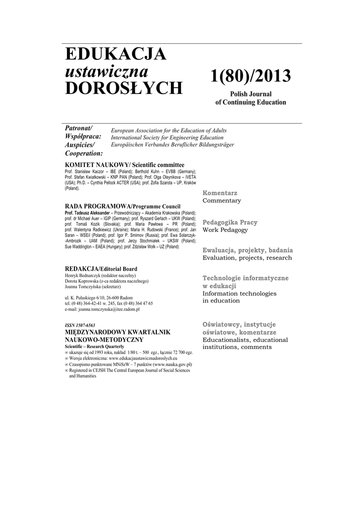 EDUKACJA ustawiczna DOROSŁYCH 1(80)/2013
