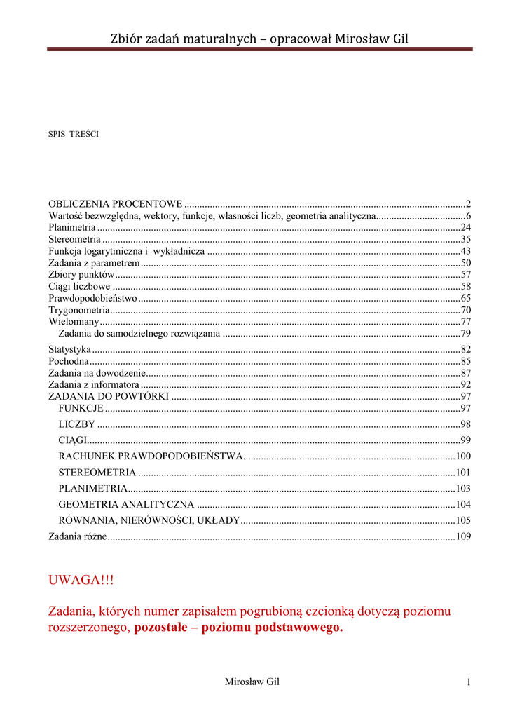 Zbiór zadań maturalnych – opracował Mirosław Gil