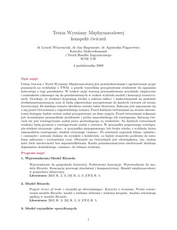 Teoria Wymiany Międzynarodowej konspekt ćwiczeń