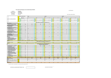 Plan studiów obowiązujący od roku akademickiego 2015/2016 ZATWIERDZAM: Specjalność studiów: Iberystyka portugalistyka Poziom studiów: Profil studiów: studia 1 stopnia ogólnoakademicki Forma studiów: stacjonarne data, podpis i pieczęć prorektora 15 e 3 60 e 5 30 z 2 15 z 2 60 z 5 15 30 e z 4 2 15 z 1 30 e 4 15 z 1 ECTS 8 WY CA LB KW SM Forma zal. z WY CA LB KW SM Punkty ECTS 120 WY CA LB KW SM 6 Forma zal. WY CA LB KW SM 5 ECTS CA LB KW SM 4 ECTS 3 3 Forma zal. WY CA LB KW SM Rok III 2 ECTS 1 Forma zal. Rodzaj zaj. Rok II Forma zal. Rok I ECTS Razem Lp. Nazwa modułu (przedmiotu) Punkty ECTS Wymiar godzin (łączny) Forma zal. KIERUNEK: 60 e 5 30 z 2 WY CA LB KW SM Blok modułów (przedmiotów) obowiązkowych - A Moduł podstawowy 1 Praktyczna nauka języka portugalskiego 2 Praktyczna nauka języka hiszpańskiego Moduł kulturowo-historyczny 1 Historia Portugalii 2 Cywilizacja Portugalii 3 Cywilizacja krajów portugalskojęzycznych Moduł językoznawczy 4 Podstawy językoznawstwa 5 Gramatyka opisowa języka portugalskiego 6 Gramatyka kontrastywna 7 Historia języka portugalskiego 8 Metodologia badan językoznawczych Moduł literaturoznawczy 9 Literatura portugalska i portugalskojęzyczna 10 Teoria literatury 11 Metodologia badan literackich Moduł traduktologiczny 12 Podstawy traduktologii Inne 13 Łacina 14 Filozofia 15 Technologia informacyjna 16 Metodol. nauk humanist.-społecznych 17 Ochrona własności intelektualnej 18 Wychowanie fizyczne Razem A 46 9 630 120 0 630 120 180 60 z z 12 4 3 3 2 30 30 30 0 15 0 30 15 30 30 e 3 2 11 2 2 1 30 120 30 30 15 30 60 0 0 0 0 60 30 30 15 17 2 1 225 30 15 75 30 0 150 2 30 0 30 2 3 2 2 1 1 114 30 30 30 15 15 30 1515 4 60 4 60 0 2 2 3 2 3 3 4 60 30 30 30 30 30 30 0 0 0 30 0 0 0 60 30 30 0 30 30 30 3 30 0 30 3 2 3 15 15 30 15 0 0 0 30 30 2 15 0 15 150 60 e e 11 5 15 30 z 2 15 15 15 30 z z 30 z 3 3 15 15 15 z 30 e 2 4 15 30 60 z 6 15 15 2 15 30 30 30 30 30 30 30 15 15 z z 3 2 z z/o 1 1 30 15 15 30 270 30 0 1215 0 105 30 30 0 300 0 z 45 0 0 255 0 z z 2 2 2 24 45 0 0 210 0 19 45 0 0 195 0 17 30 0 0 165 0 17 0 0 0 90 0 7 Blok modułów (przedmiotów) wybieralnych - B 21 Seminarium licencjackie Razem B 22 23 24 25 26 26 27 28 29 30 31 32 33 34 35 Gramatyka praktyczna j. portugalskiego Techniki pisania Tłumaczenie tekstów użytkowych Językoznawstwo stosowane Tłumaczenie tekstów technicznych i nauk. Tłumaczenie tekstów literackich Tłumaczenie tekstów ekonomicznych Tłumaczenie tekstów prawniczych, sądowych i uwierzytelnionych Wiedza o tekście Warianty języka portugalskiego Aspekty interkulturowe w tłumaczeniu Techniki pozyskiwania i gromadzenia informacji Tłumaczenie ustne J.portugalski- sprawności zintegrowane Przedmiot do wyboru* Razem A+B+B2 2 8 4 47 165 Rzaem h w semestrze: Praktyki 3 Minimalna liczba punktów ECTS dla zajęć ogólnouniwersyteckich lub na innym kierunku studiów 2 Liczba punktów za pracę dyplomową i jej obronę (egzamin dyplomowy) RAZEM ECTS: 60 30 0 120 0 30 30 540 75 2115 345 0 0 30 0 0 30 120 0 0 465 0 1680 60 30 0 0 0 0 0 0 0 0 0 0 0 0 0 0 0 0 Blok modułów wybieralnych-specjalizacyjnych Specjalizacja: tłumaczeniowa-B2 30 30 z z 2 2 0 0 30 z 15 z 0 0 0 0 0 0 0 0 0 0 30 1 15 z e 15 30 0 30 0 0 0 300 435 0 0 0 30 0 45 0 0 0 90 0 345 390 0 0 0 0 0 0 z 2 e 3 6 30 30 75 0 0 0 90 0 300 z 0 2 10 29 15 60 375 0 0 15 z 2 30 30 z z 2 2 0 105 0 300 360 2 z 3 z e 30 e 3 30 z z 2 2 10 19 3 4 0 0 15 10 15 27 45 30 0 0 z z 0 90 0 255 330 0 30 2 2 15 11 15 30 15 0 0 0 90 0 180 0 30 225 3 1 1 10 30 30 30 * przedmiot do wyboru z listy przedmiotów oferowanych przez IFR na początku semestru Zatwierdzono na posiedzeniu Rady Wydziału w dniu: 30 2 30 10 180 z 2 30 0 0 60 105 2 30 1 3 30 30 z 2 2 30 30 z ………………………..……………… data, podpis i pieczęć dziekana 30 30 30