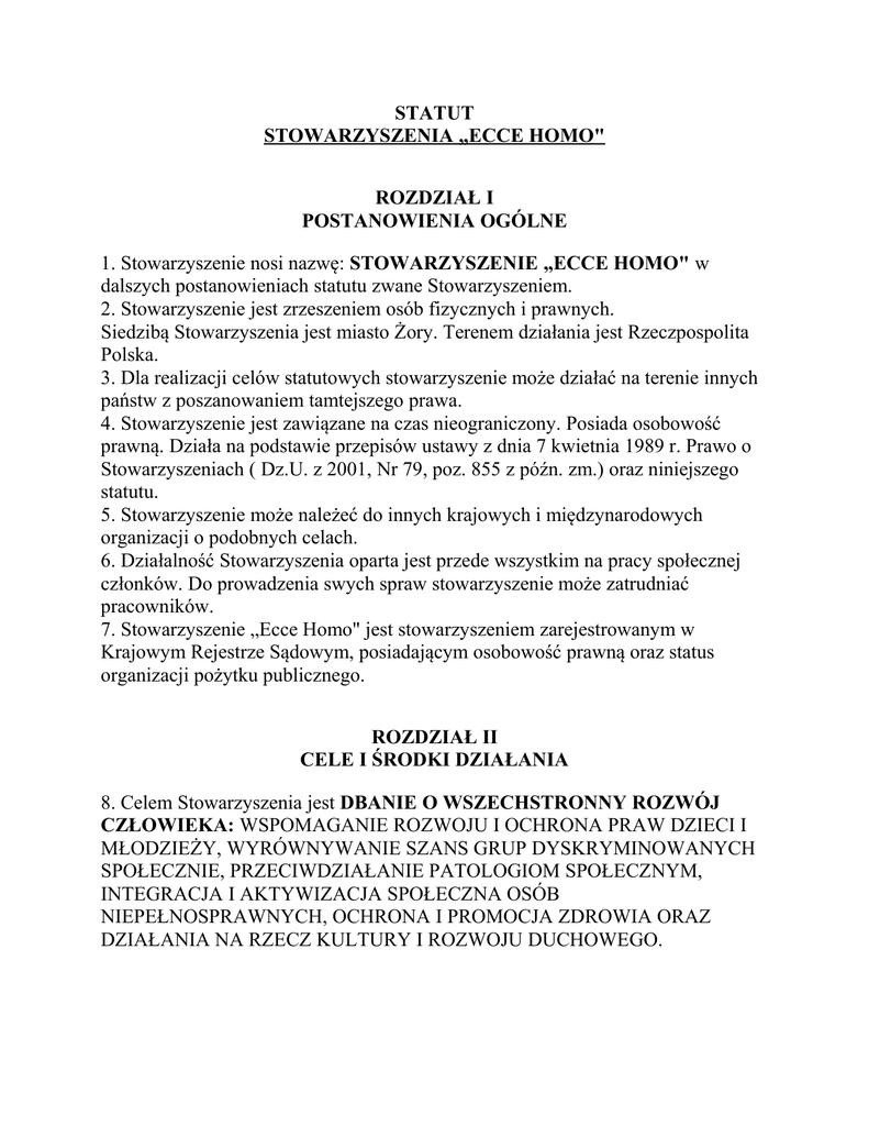 STATUT STOWARZYSZENIA - Stowarzyszenie ECCE HOMO Żory