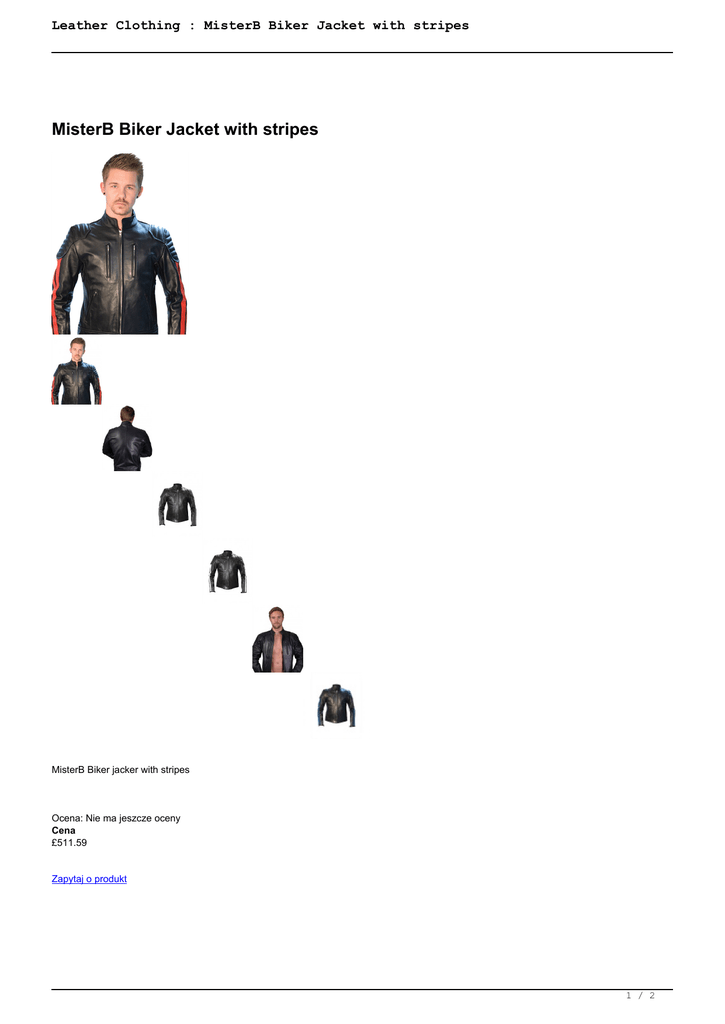 Leather Clothing : MisterB Biker Jacket with stripes MisterB Biker Jacket with stripes MisterB Biker jacker with stripes Ocena: Nie ma jeszcze oceny Cena £511.59 Zapytaj o produkt 1 / 2 Leather Clothing : MisterB Biker Jacket with stripes Opis Mister B Biker Jacket Red stripes This high quality leather Biker Jacket has a: great fit, padding on the shoulders and zipper pockets. Two side stripes on the arms available in: black, red, blue, grey and white to show off what you are into. Small size 50-52 Medium size 54-56 Large size 58-60 XL size 62-64 Opinie Nikt jeszcze nie recenzowa? tego produktu. 2 / 2 Powered by TCPDF (www.tcpdf.org)